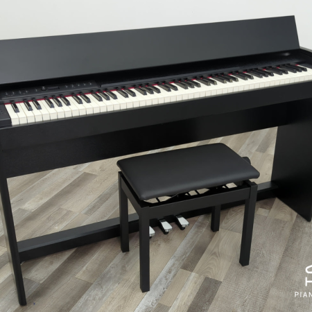 Dòng đàn Roland F100 với thiết kế nhỏ gọn, hệ phím nặng và độ nhạy cao cùng âm thanh mạnh mẽ độc quyền Piano Roland.