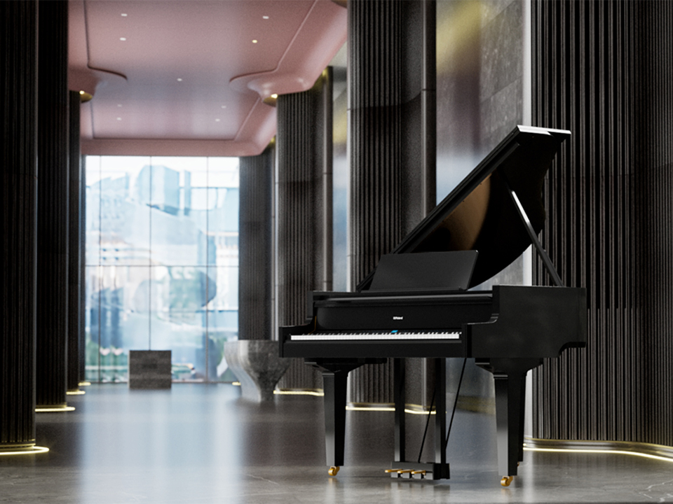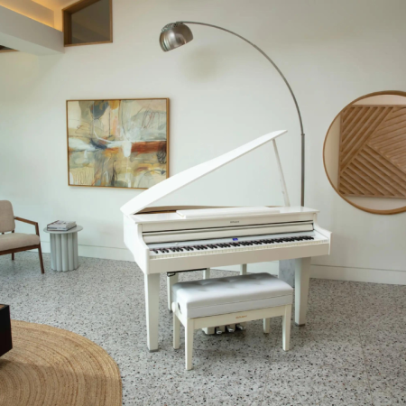 - Đàn mini grand piano điệnđược thiết kế cho phòng khách.